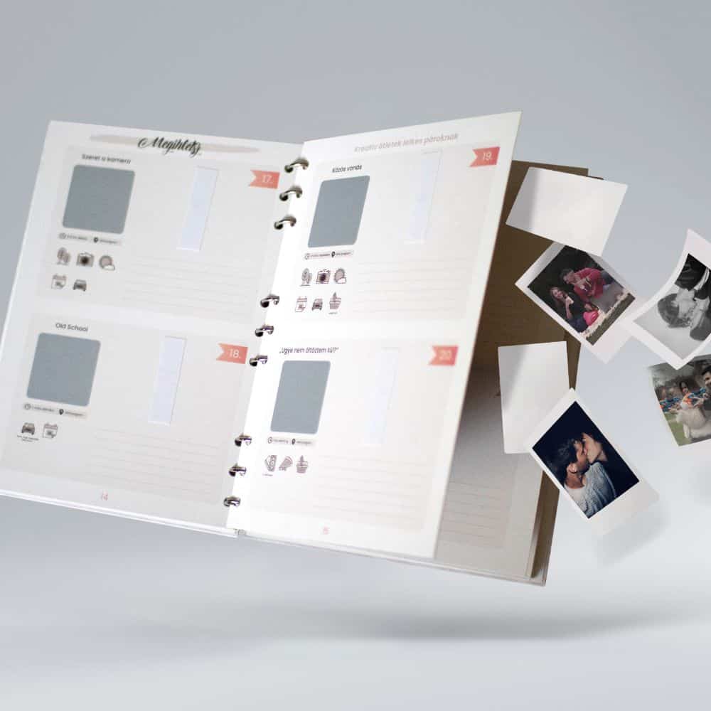 A Kalandkönyvben található feladatok mindegyike úgy lett megtervezve, hogy különleges élményekkel gazdagítsa a párok életét. Nincsenek elcsépelt programok, mint városi séta vagy mozizás (legalábbis nem úgy, ahogy először gondolnátok), csak érdekes, kreatív kalandok várnak rátok.