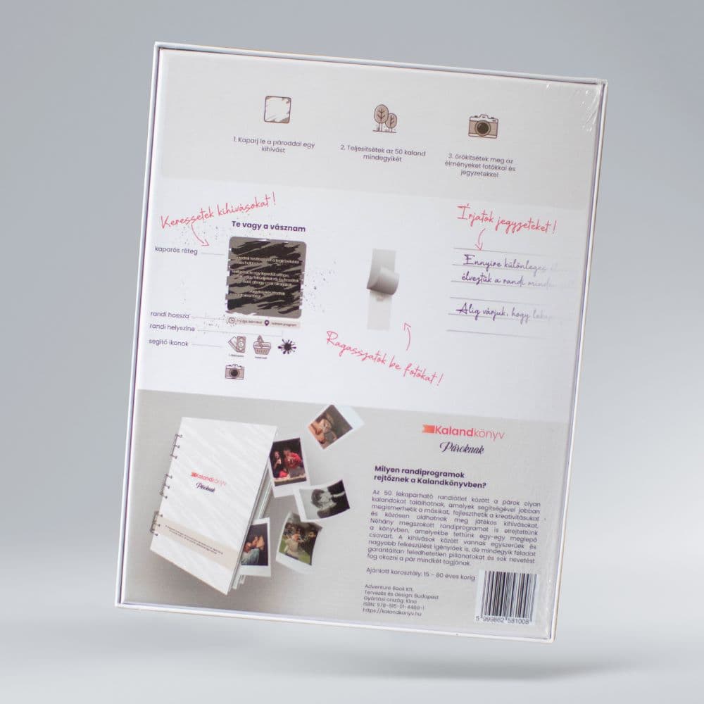 A Kalandkönyv egy közepes méretű, belül bubifóliával bevont papírcsomagolásban érkezik.